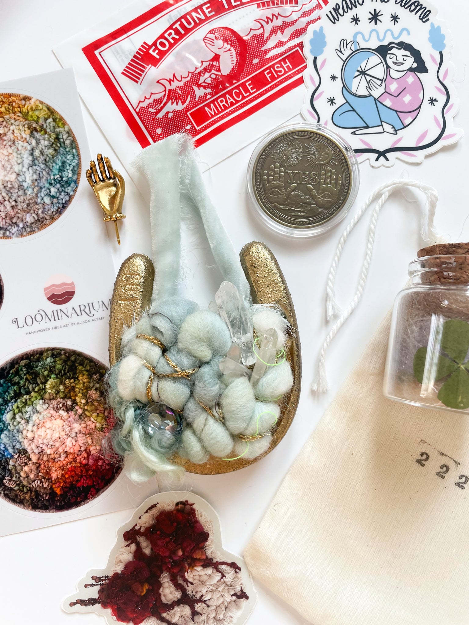 Not lucky enough? The package also includes a lucky coin, fortune teller fish, a four leaf clover, a Loominarium sticker sheet and assorted Loominarium stickers.